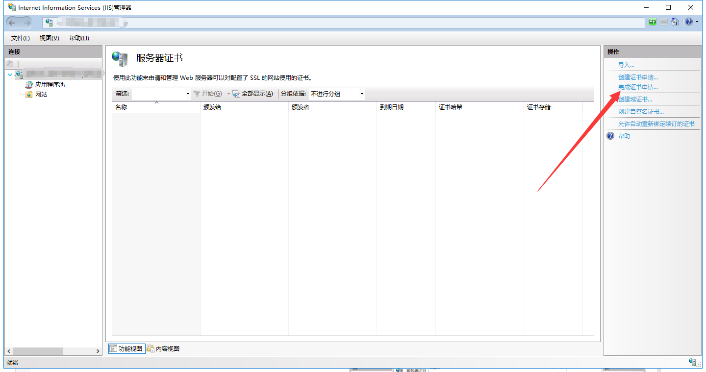 非一元证书在iis下的申请与安装1 iis证书申请csr① 打开iis,选择服务器证书 ![]() ② 选择创建证书申请,填好信息以及csr文件路径 ![]() 位长选择2048位 ![]() ![]() ③ 点击下一步完成,通过生成的csr文件进行证书申请就可以了。 2 iis上非一元证书安装① 打开iis-服务器证书,选择完成证书申请 ![]() ② 选择由证书机构下发的证书文件,填写好记的名称。 ![]() ③ 证书安装完毕,在网站绑定443端口选择对应的证书即可 ![]() ④ 然后就可以通过https:// + 域名进行访问,https设置完毕。 |